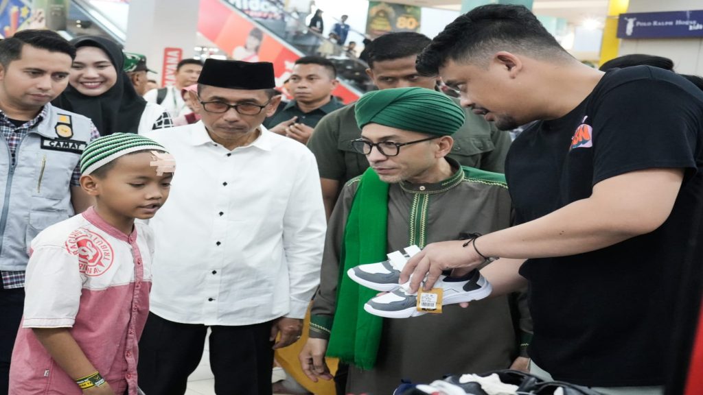 AXIALNEWS.id | Kegembiraan terpancar di wajah Aznan. Minggu (16/4/2023) sore, anak yatim usia sepuluh tahun itu berbelanja baju dan sepatu lebaran bersama Walikota Medan Bobby Nasution di Ramayana Robinson.