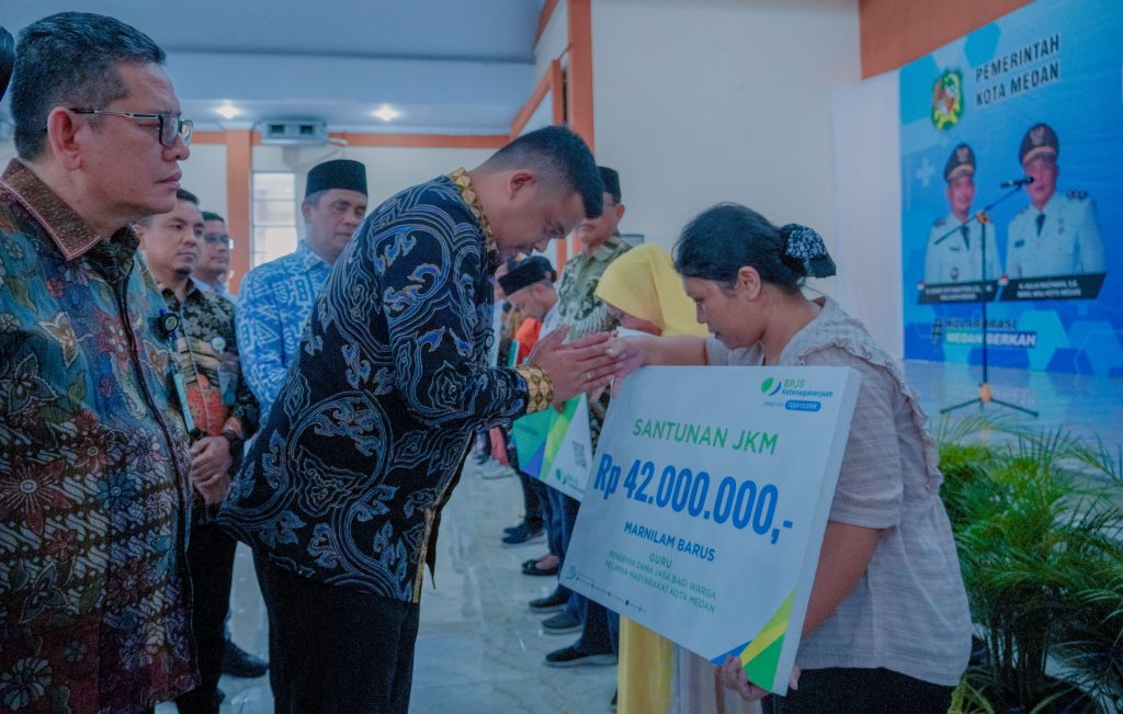 Sekaligus memberikan Kartu BPJS Ketenagakerjaan secara simbolis bagi Warga Pelayan Masyarakat Kota Medan Tahun 2024.