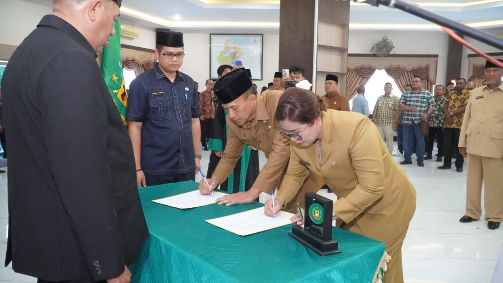 Dipelantikan Syah Afandin bersama delapan pejabat Eselon II yang dilantik melakukan menandatangani berita acara pelantikan.