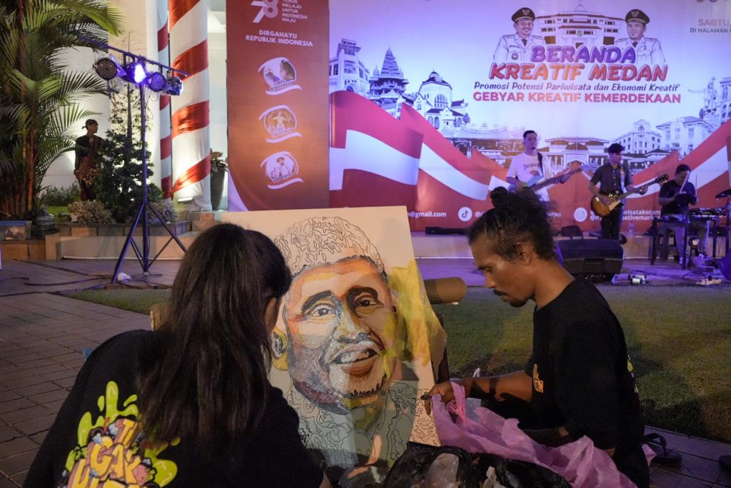 Selain aksi melukis berbahan limbah plastik dan lomba mewarnai, panggung Beranda Kreatif Medan juga dimeriahkan oleh suguhan musik, tari tradisi dan modern, serta pembacaan puisi oleh seniman Teja Purnama Lubis. Seluruh pertunjukan seni bertemakan kemerdekaan.