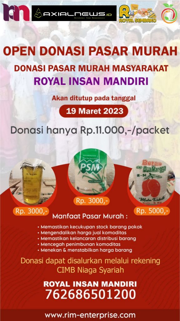 AXIALNEWS.id – [dibaca: exsil nius] – Semarakan ramadan 1444 hijriah, media siber AXIALNEWS bersama Koperasi Royal Insan Mandiri (RIM) cabang Kabupaten Langkat open donasi pasar murah ramadan.