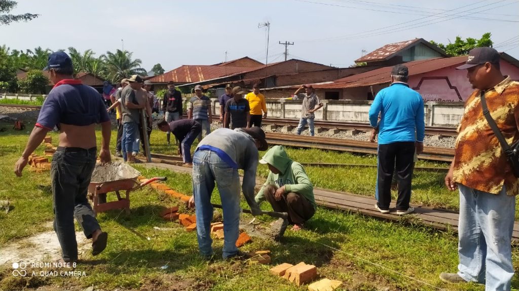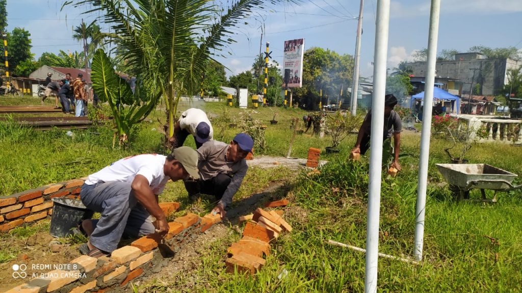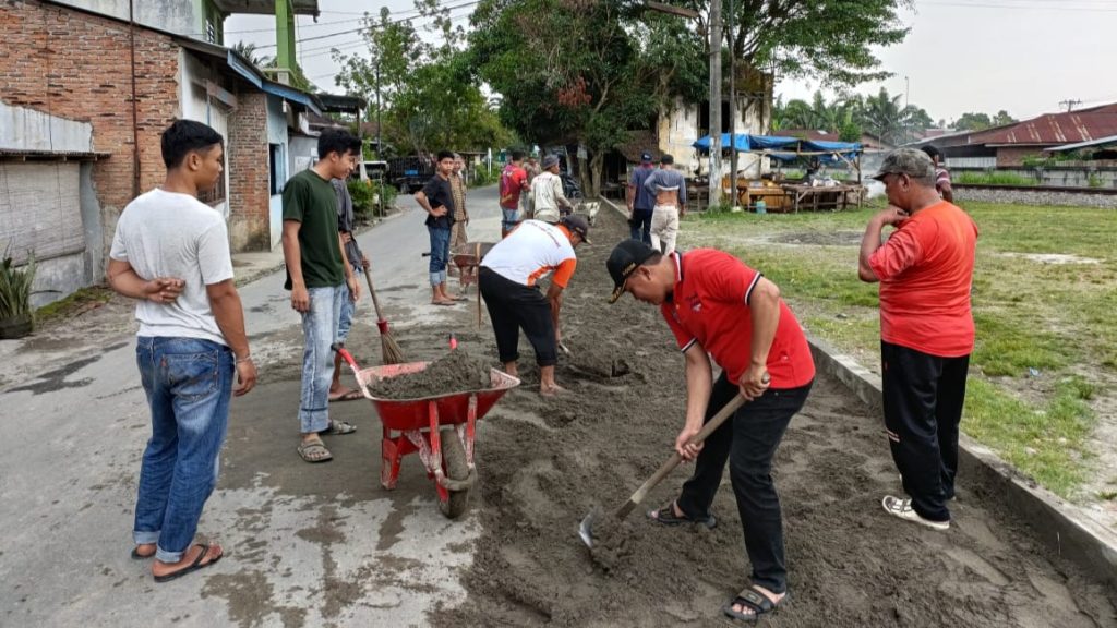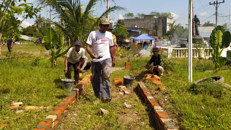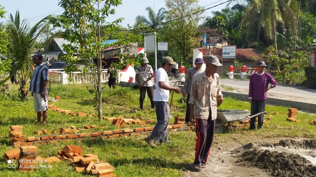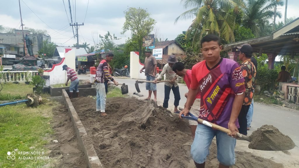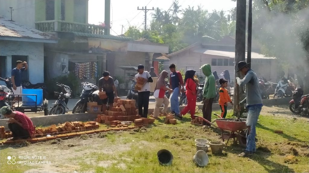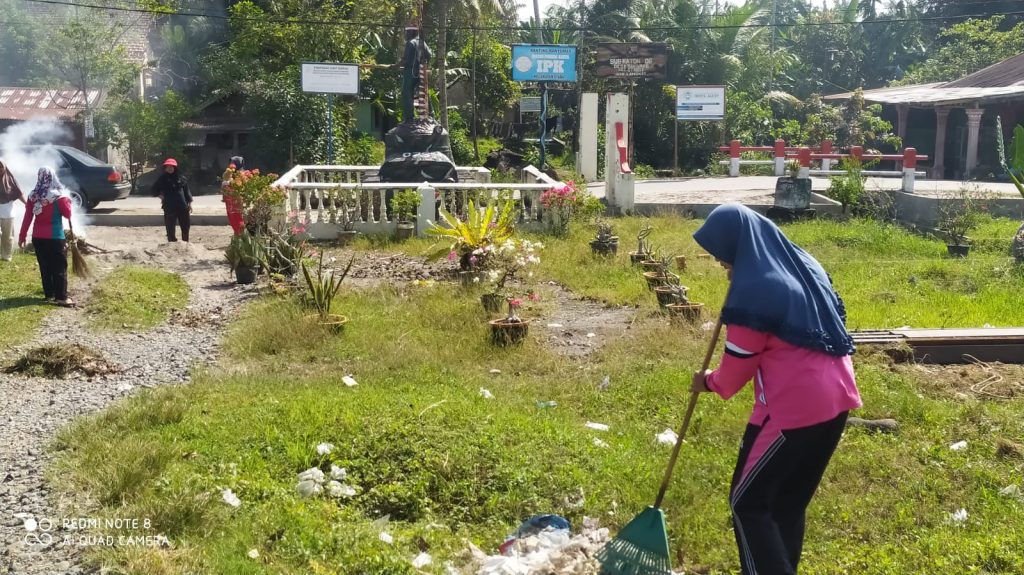 Terlihat Kadesnya sendiri pun turut sibuk ikut bergotong royong, meracun rumput dan lainnya. Sementara warga ada yang menyapu, membakar sampah, mencangkul, mengaduk semen, memasang batu bata, memindahkan tumpukan besi dan mengerjakan lainnya.