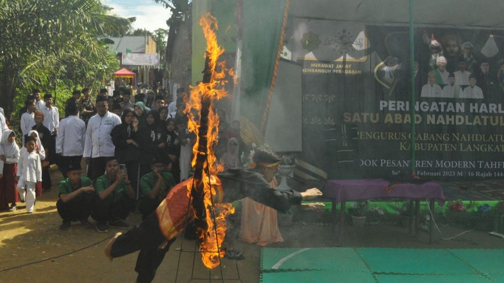 AXIALNEWS.id – [dibaca: eksil nius] – Peringatan hari lahir satu (1) Abad Nahdlatul Ulama di Kabupaten Langkat berlangsung meriah dan hikmad. Beragama penampilan atraksi bela diri, sholawatan khas NU, dan seni budaya oleh santri Ponpes Tahfiz An Nahja serta Nahdliyyin Negeri Bertuah turut menyemarakkan.