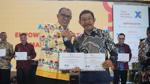 Piagam penghargaan diserahkan Direktur Jenderal Pendidikan Anak Usia Dini, Pendidikan Dasar dan Pendidikan Menengah (Ditjen PAUD Dikdasmen) Kementerian Pendidikan Dasar dan Menengah, Iwan Syahril.