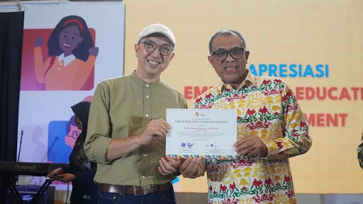 Sekretaris Dinas Pendidikan Langkat, Robert Hendra Ginting turut meraih apresiasi dalam kategori “Empowered Education Management” atas usahanya mewujudkan pembelajaran yang berfokus pada kebutuhan anak didik.