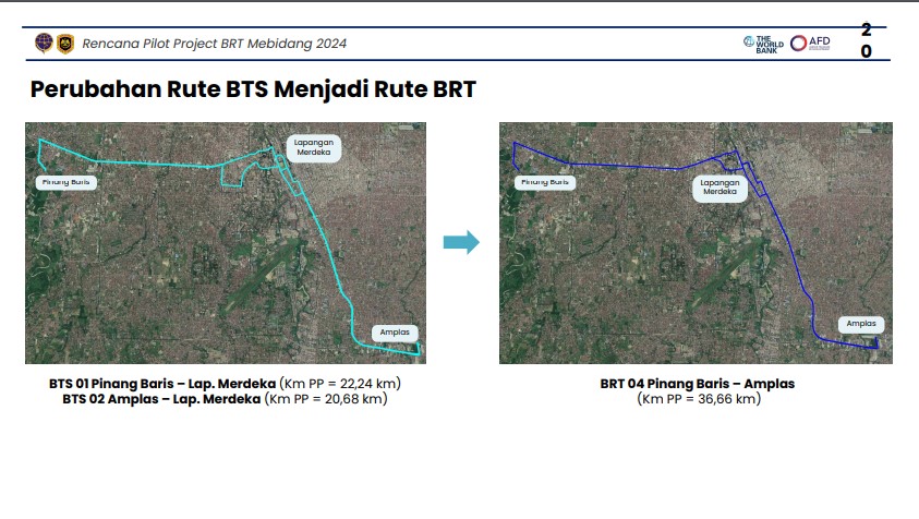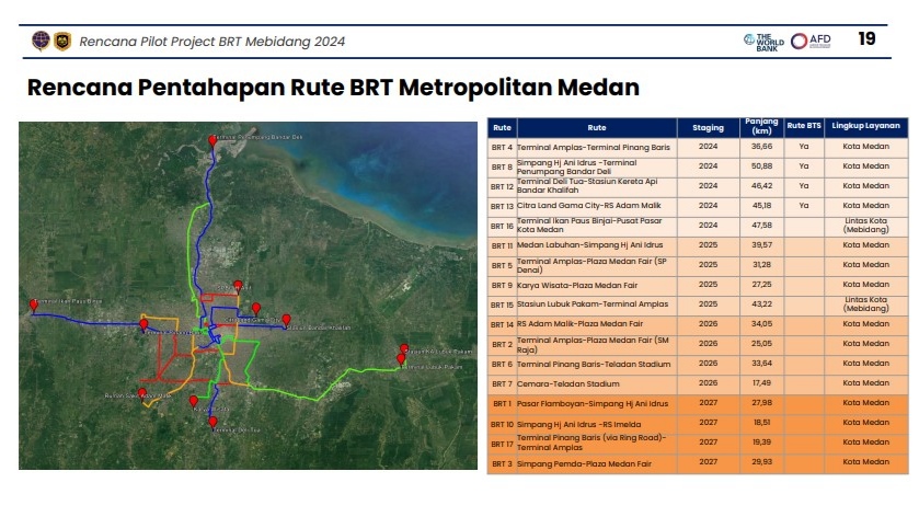 Di ibu kota Sumatra Utara ini bakal ada layanan Bus Rapid Transit (BRT) Medan-Binjai-Deliserdang (Mebidang). Groundbreaking pekerjaan Depo Pinang Baris/Amplas pun telah dijadwalkan, yakni minggu kedua Desember 2023.