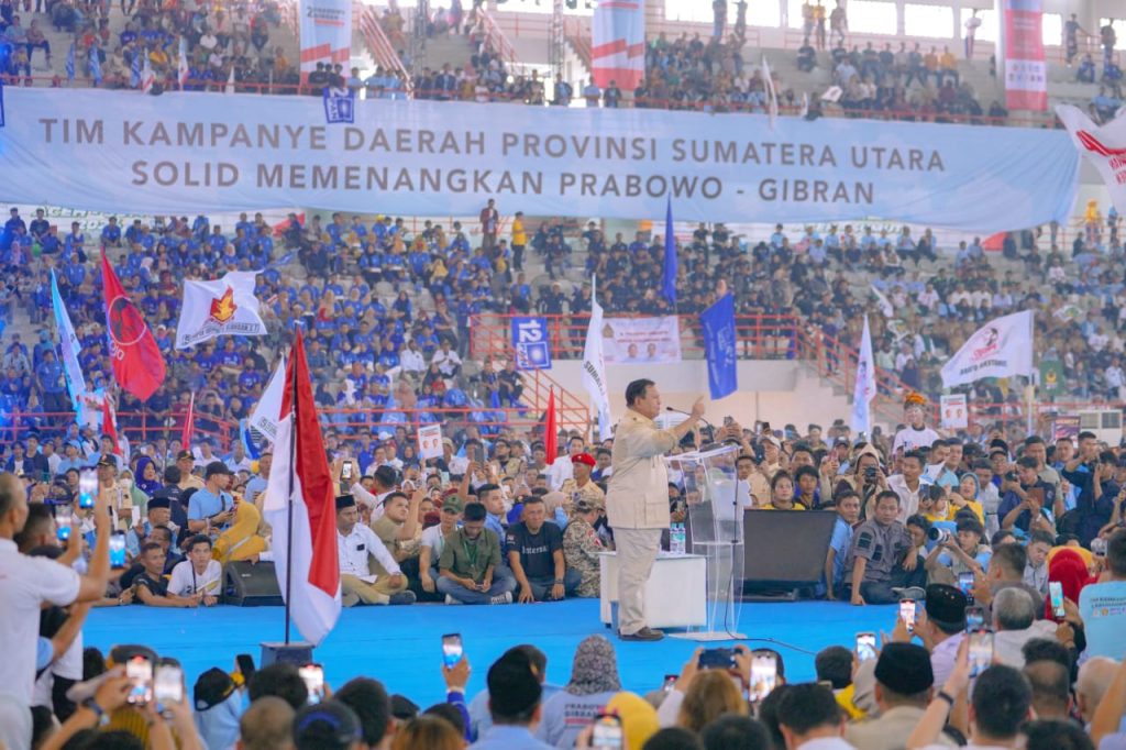 AXIALNEWS.id | Calon Presiden Nomor Urut 02, Prabowo Subianto melakukan kampanye di Sumatera Utara, Sabtu (14/1/2024).