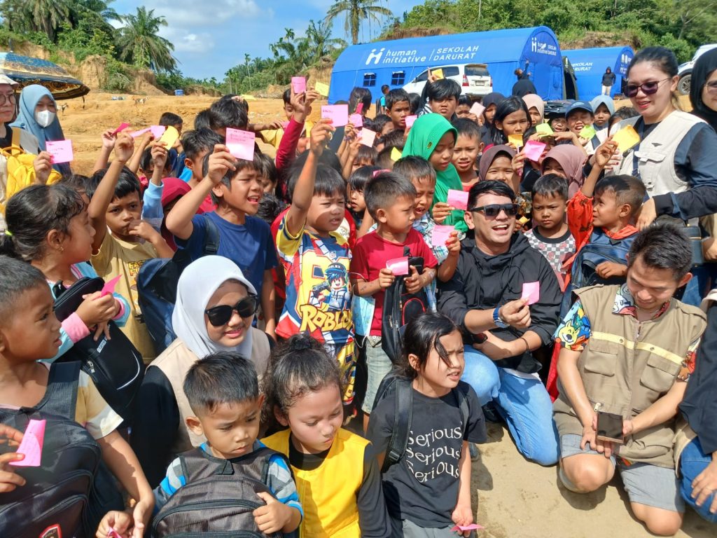 Sejumlah relawan asal Kota Medan datang menyusuri lokasi pengungsian di Posko Sumur Cincin Kampung Durian dan Posko Kota Lintang Bawah, Kuala Simpang. Mereka tidak hanya membawa bantuan logistik, tetapi juga menghadirkan ruang aman bagi anak-anak korban banjir untuk memulihkan trauma lewat aktivitas bermain, bercerita, dan menulis harapan.