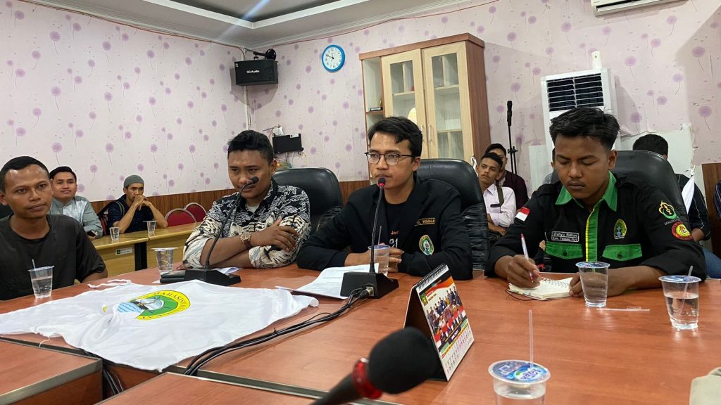 Ketua Umum PB HIMALA Indonesia, M Wahyu Hidayah juga ikut turun dalam aksi ini, menyampaikan sejumlah tuntutan mereka untuk mengevaluasi kinerja DPRD Langkat.