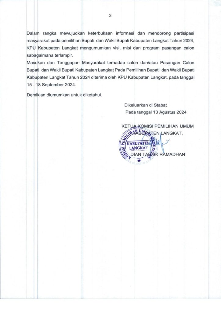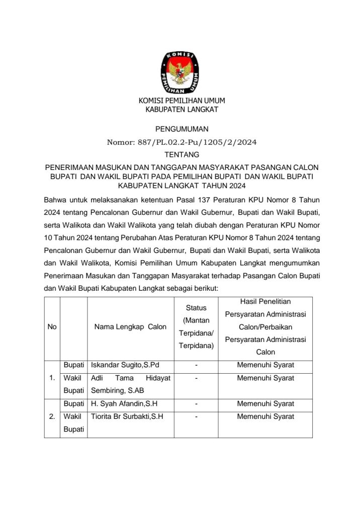 Sumber foto Komisi Pemilihan Umum (KPU) Kabupaten Langkat.