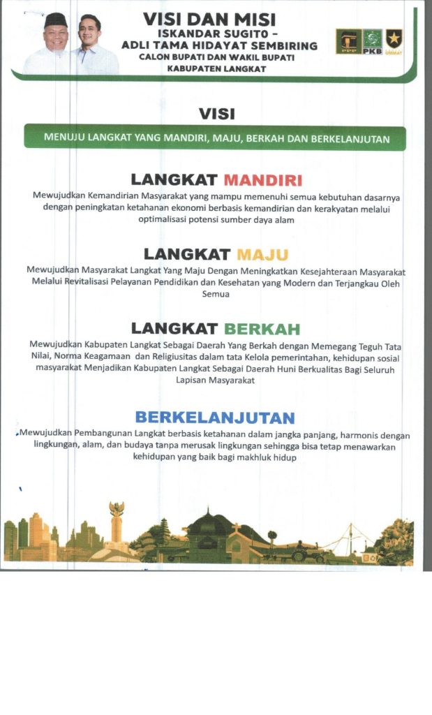 AXIALNEWS.id | Ketahui visi misi bakal pasangan calon Bupati Langkat dan Wakil Bupati Langkat, Iskandar Sugito dan Adli Tama Hidayat Sembiring.