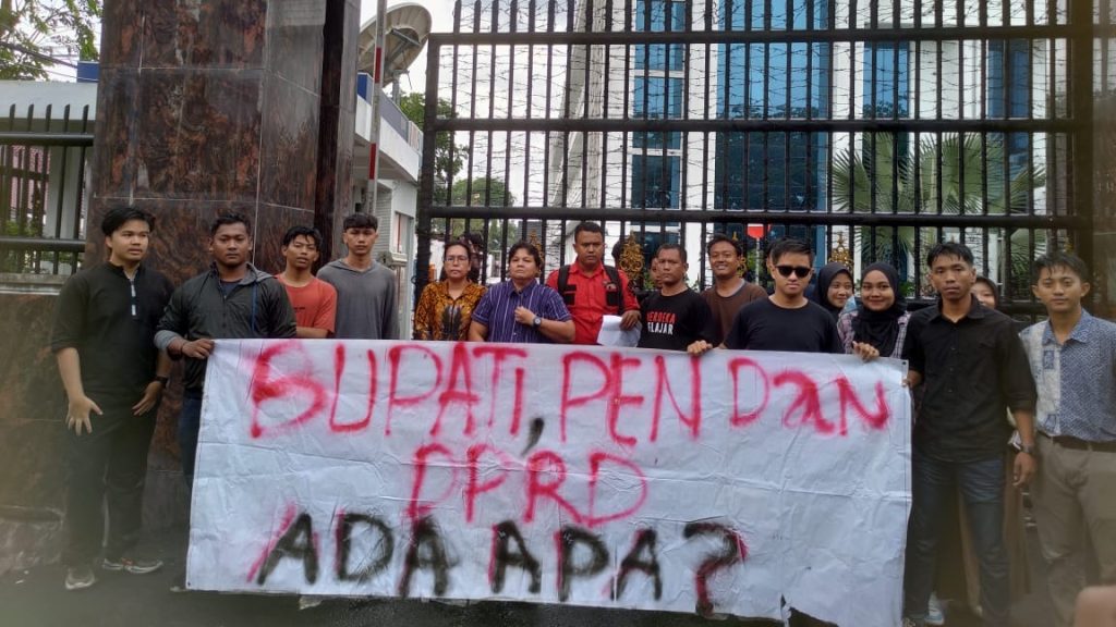 Mereka datang guna menyampaikan dugaan penyalahgunaan pinjaman dana Pemulihan Ekonomi Nasional (PEN) di Kabupaten Serdang Bedagai (Sergai).