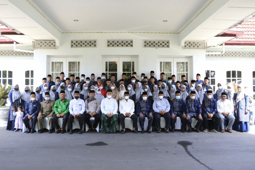 Walikota Binjai Drs H  Amir Hamzah M.AP bersama  78 Kafilah Kota Binjai untuk mengikuti pelaksanaan Musabaqah Tilawatil Qur’an (MTQ)  Ke-38 Tingkat Provinsi Sumatera Utara Tahun 2022, di Pendopo Umar Baki Kota Binjai, Minggu (20/3/2022). (Sumber Diskominfo Binjai For axialnews.id)