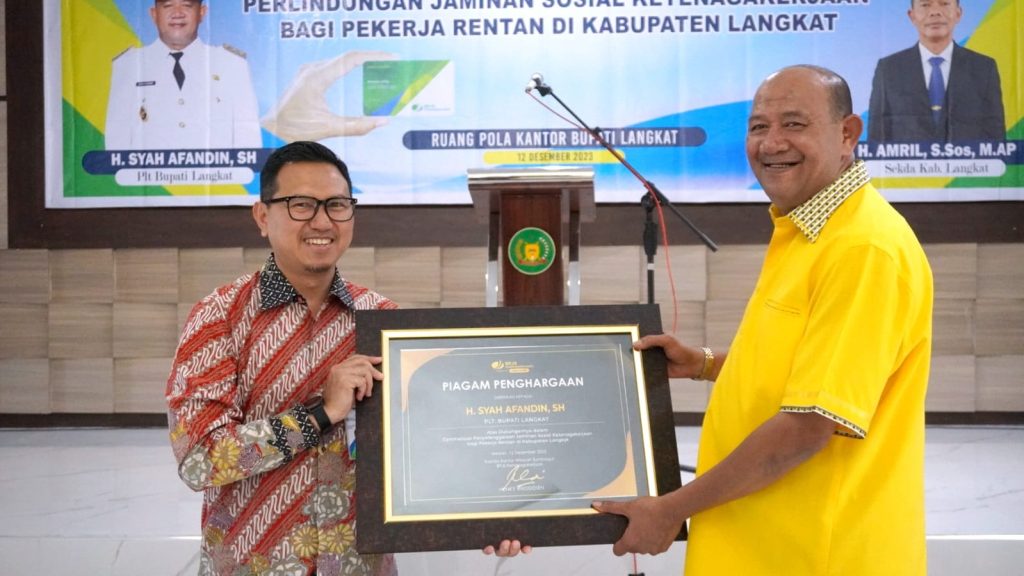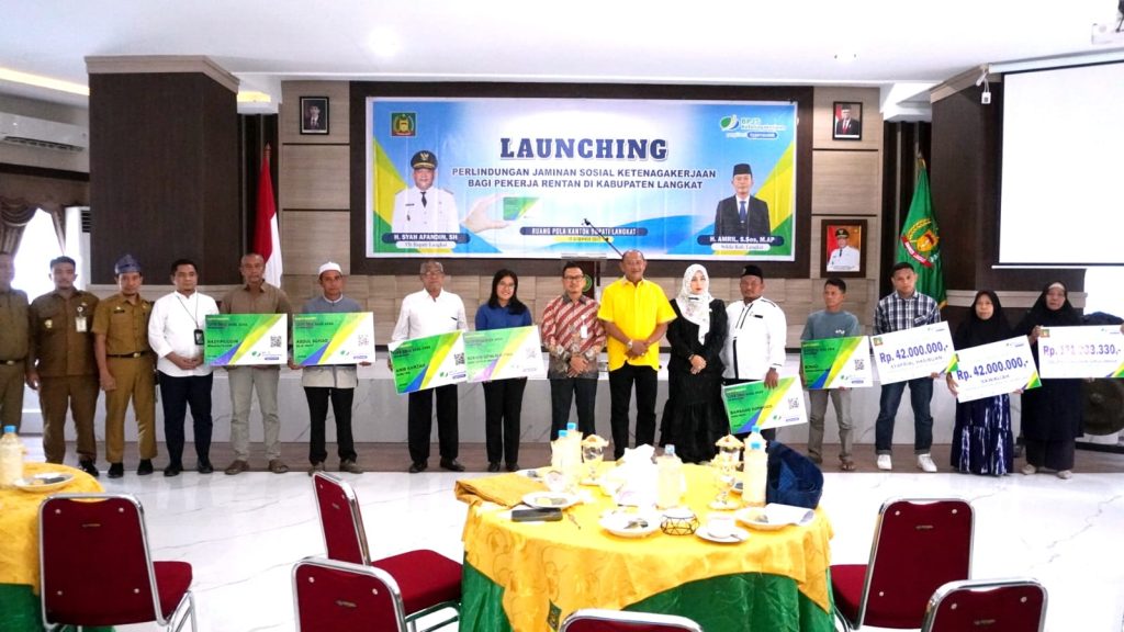 Diketahui pada launching perlindungan jaminan sosial ketenagakerjaan bagi pekerja rentan Langkat yang di buka Plt Bupati Langkat Syah Afandin, di ruang pola Kantor Bupati Langkat, Selasa (12/12/2023).