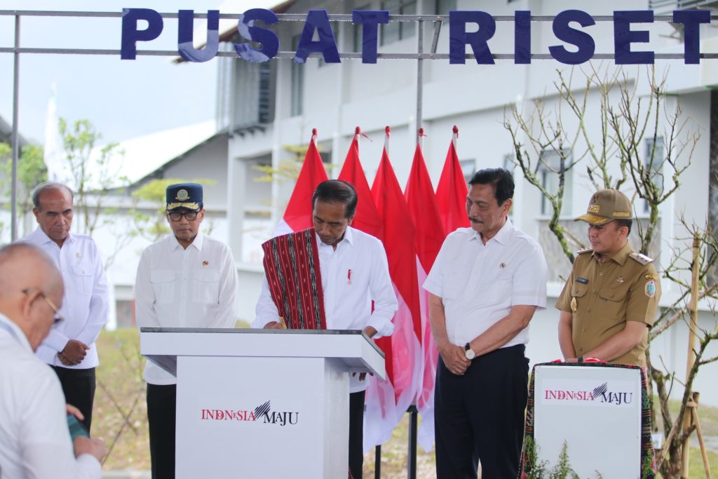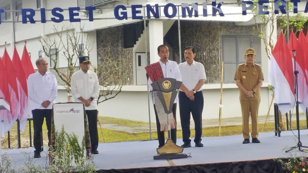 “Dengan mengucap bismillah, dengan rahmat Tuhan Yang Maha Esa pada sore ini saya resmikan Pusat Pusat Riset Genomik Pertanian di Kabupaten Humbang Hasundutan, Provinsi Sumatera Utara,” kata Presiden.
