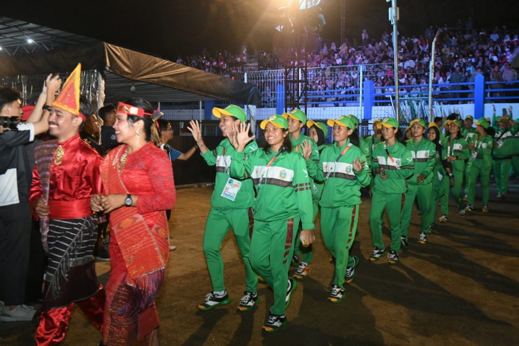 Stadion Baharudin Siregar pun bergemuruh sambutan penonton yang antusias melihat defile kontingen Sumut yang berada di Aceh dan Sumut.