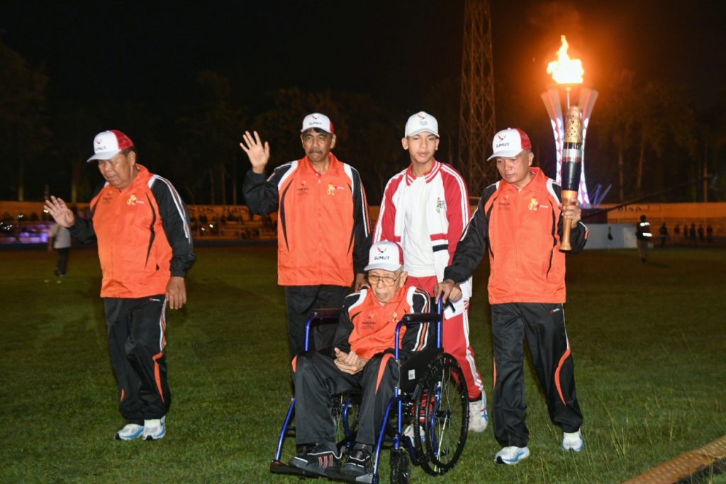 Kemudian Habib yang menggunakan kursi roda pun mengoper api obor pada pembawa terkahir yaitu Samsul Anwar, petinju legendaris Sumut.