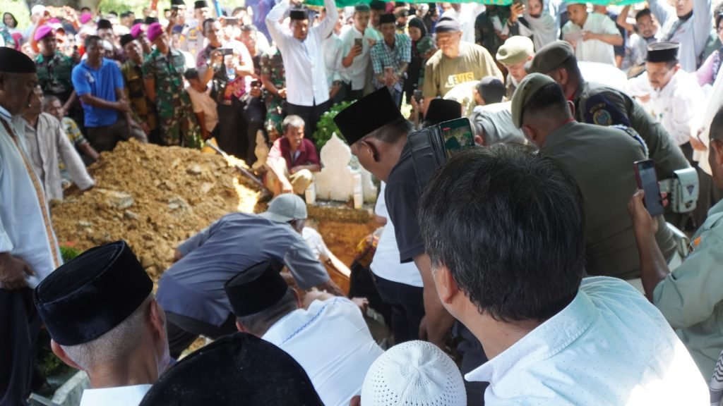 Diiringi ribuan masyarakat, jenazah Almarhum Syamsul Arifin dihantarkan ke TPU Muslim Desa Paluh Manis, Kelurahan Gebang, Kecamatan Gebang, Langkat, Rabu (18/10/23). (axialnews)