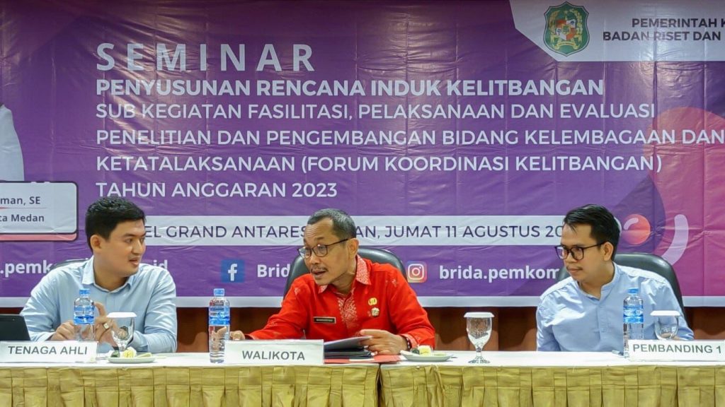 Disampaikan Kepala Badan Riset dan Inovasi Daerah (Brida) Kota Medan, Mansursyah saat membuka Seminar Penyusunan RIK Tahun Anggaran 2023, di Hotel Grand Antares Medan, Jumat (11/8/2023).