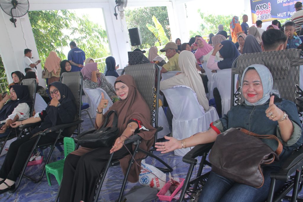 Esoknya dilanjutkan giat sosial donor darah, pelayanan kesehatan gratis, dan pembagian sembako bagi warga kurang mampu di Stabat.