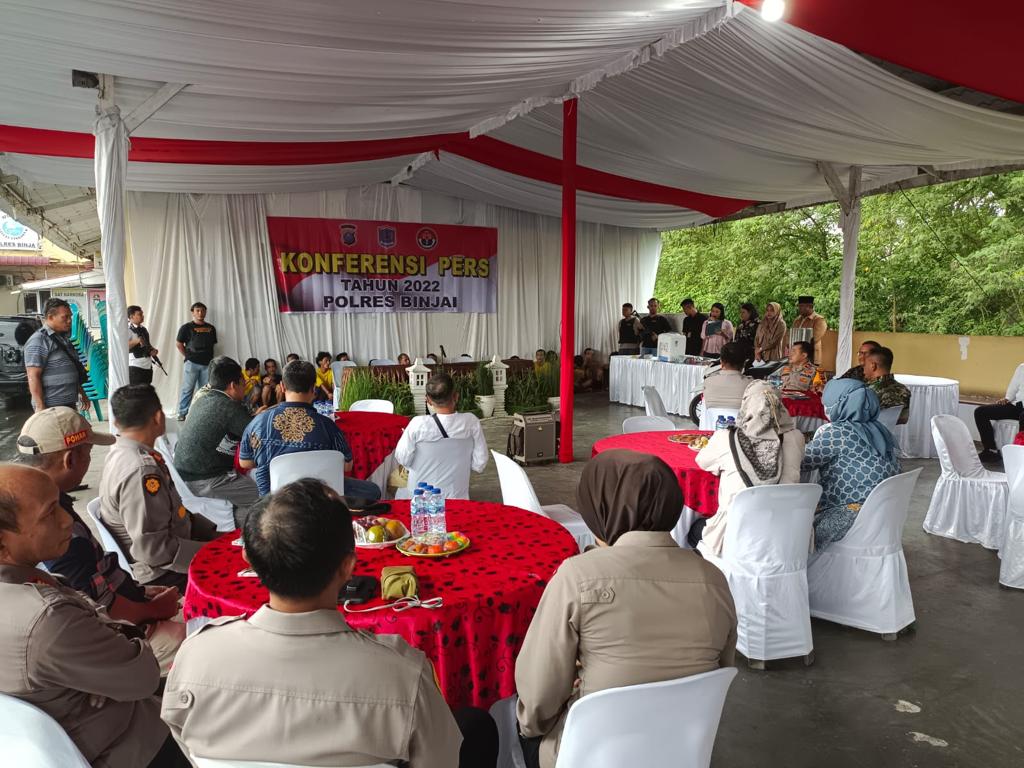 Dipaparkan Kapolres Binjai AKBP Ferio Sano Ginting SIK SH MH pada konferensi pers refleksi kinerja Polres Binjai di tahun 2022, bertempat di Mapolres Binjai, Jumat (30/12/2022). Digiat ini turut dihadirkan para tersangka berserta sejumlah barang bukti.