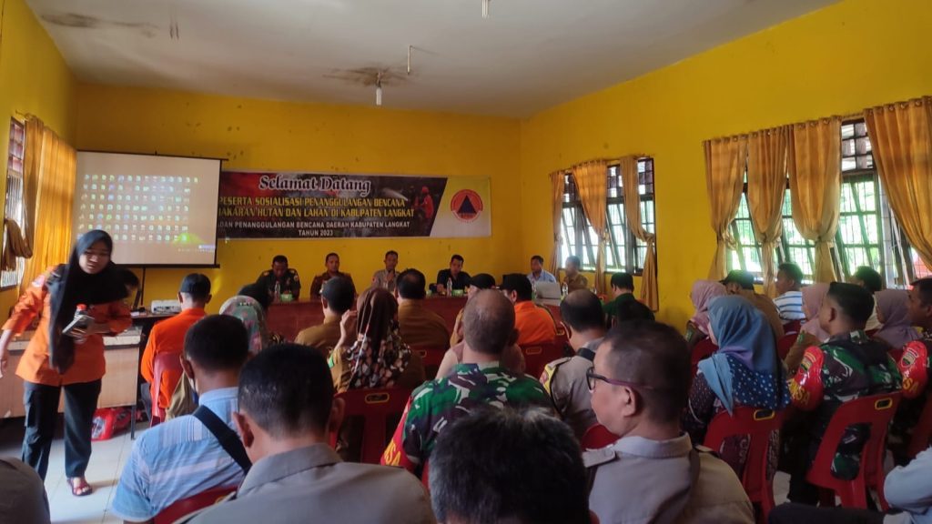 AXIALNEWS.id | Pemkab Langkat melalui Badan Penanggulangan Bencana Daerah (BPBD) menggelar sosialisasi dan simulasi pencegahan kebakaran hutan dan lahan (karhutla), dilaksanakan empat hari mulai 20-24 Juni 2023, berlokasi di Aula dan Halaman Kantor Camat Batang Serangan, Langkat.