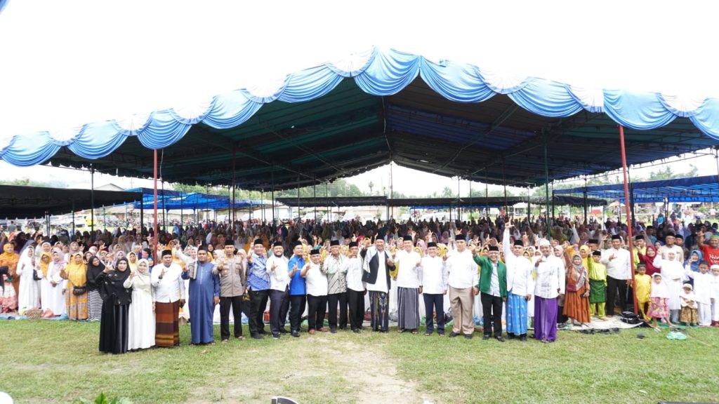 Plt Bupati Langkat Syah Afandin turut hadiri Maulid Nabi 1445 Hijriah tersebut, di Tanah Lapang Dusun B VII Desa Stabat Lama, Kecamatan Wampu, Minggu (22/10/2023).