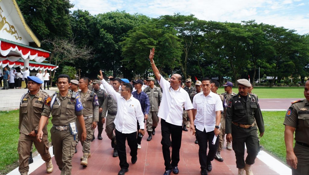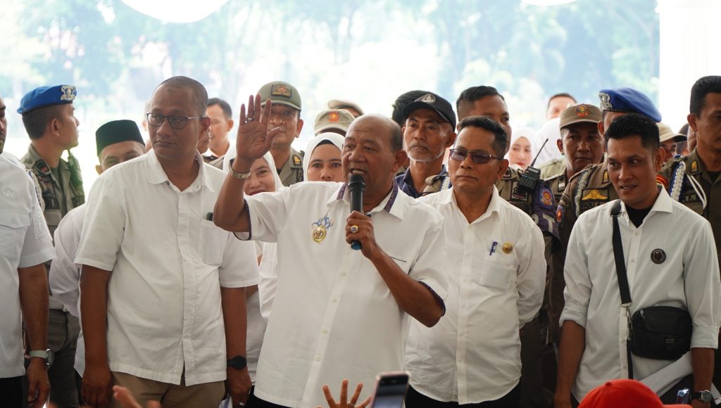 Bupati Langkat Syah Afandin menemui ratusan tenaga kesehatan sukarela (TKS) di Alun-Alun T Amir Hamzah Stabat, Rabu (20/8/25). (axialnews)